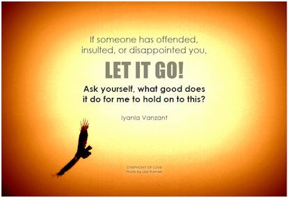 According to the Let It Go Day Facebook event (which appears to be from 2011, so if anyone's really into this idea, we need a 2015 group), some ways to let go of this baggage include examining and expressing your feelings, asking for forgiveness, organizing spaces, and "lov[ing] unconditionally" — which seems like a tall order, but a worthwhile goal nonetheless.
